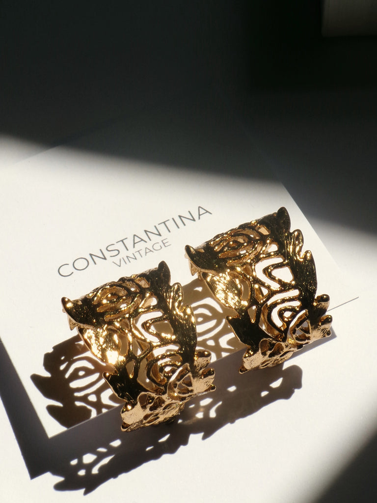 Yves Saint Laurent 1980’s gold plated open work clip on earrings