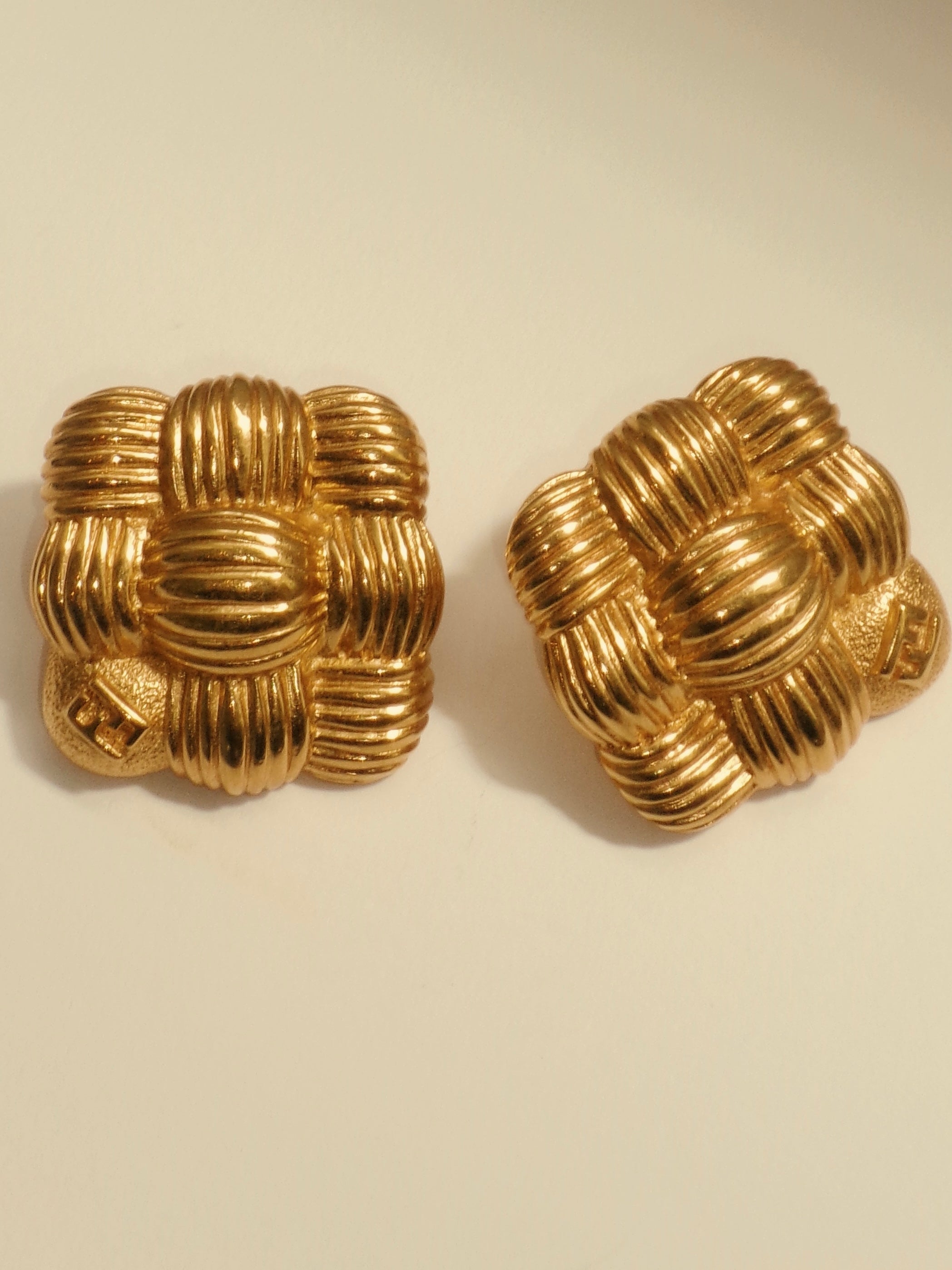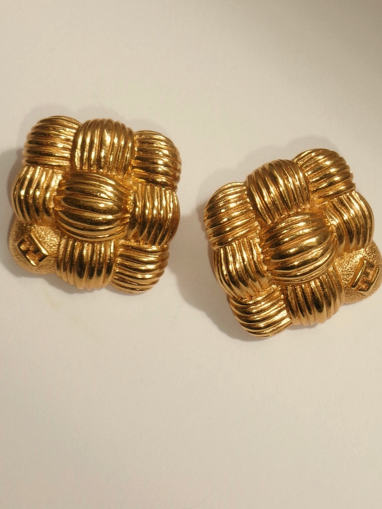 Fendi 1980’s rare logo gold plated pierced earrings
