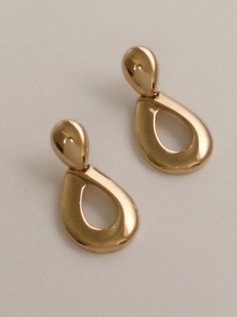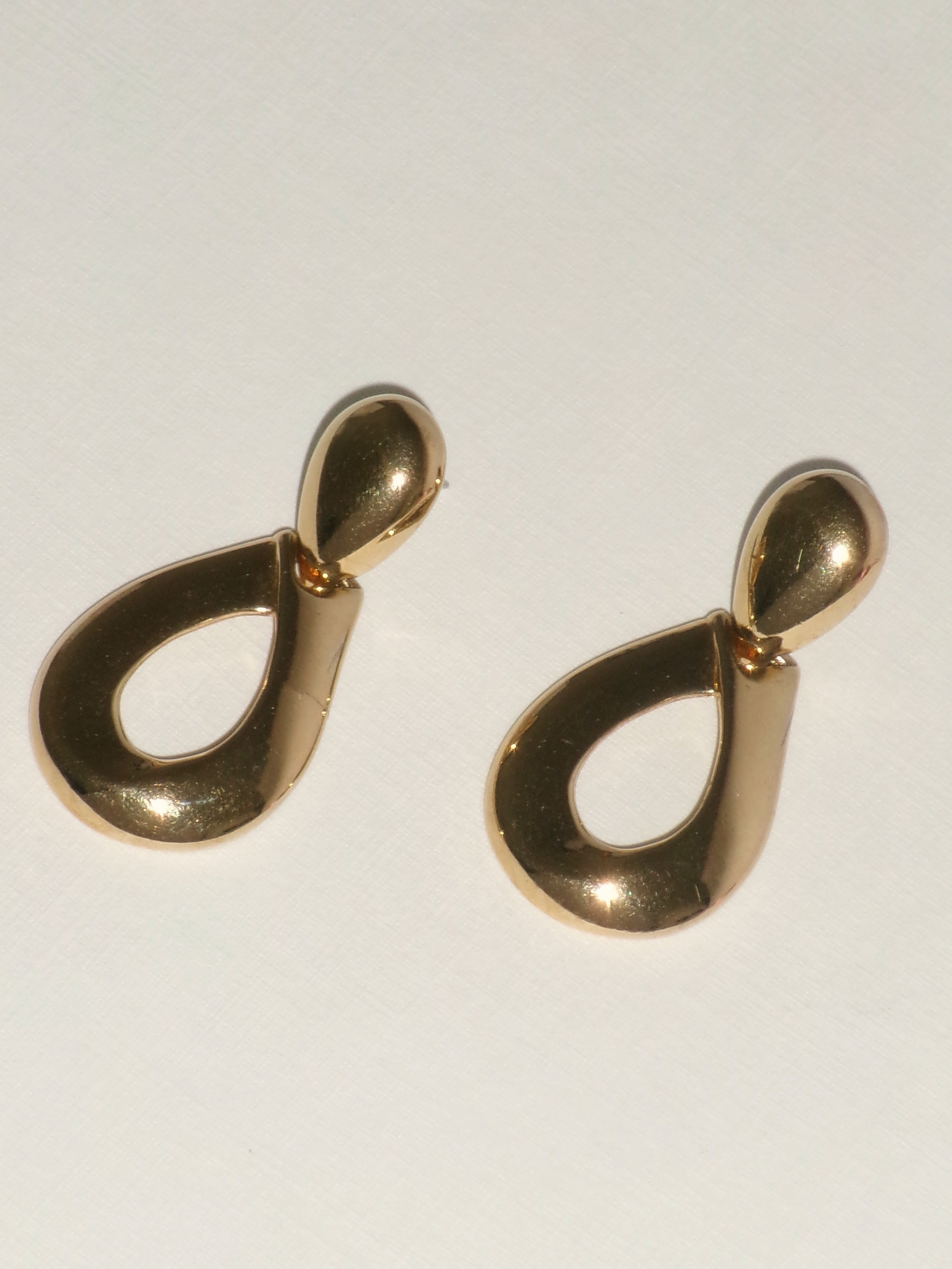 A pair of Bold sculptural drop earrings from Givenchy, crafted in polished gold plated metal. Featuring a fluid teardrop design with hinged movement.