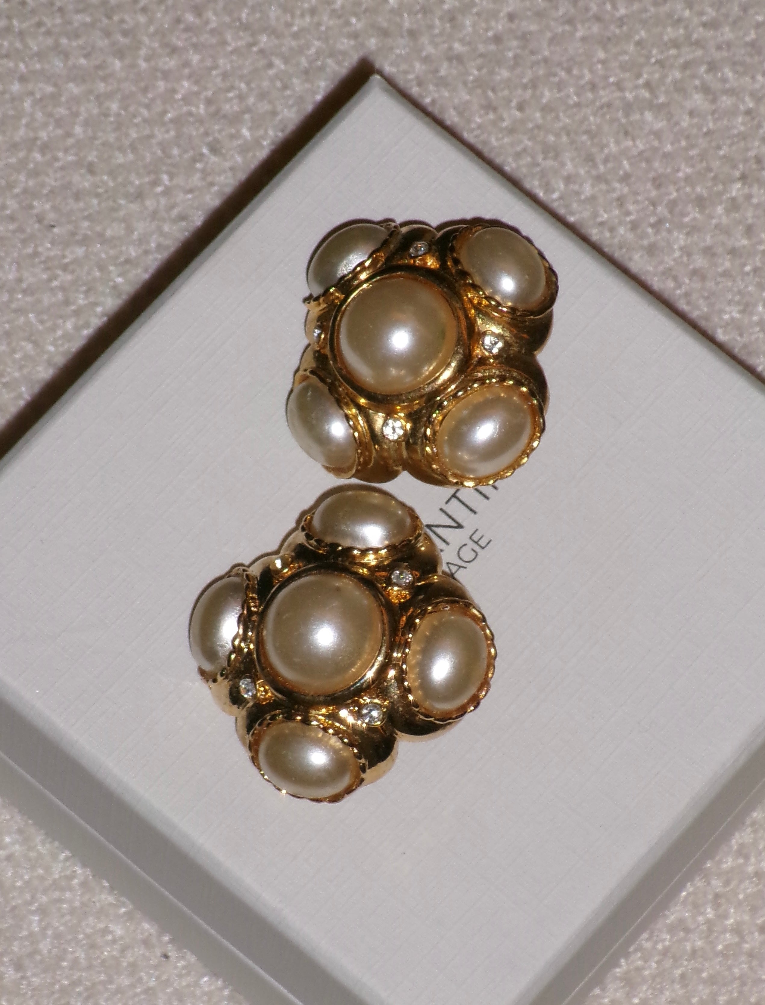 1980's pearl and crystal gold plated clip on earrings is backordered and will ship as soon as it is back in stock.
