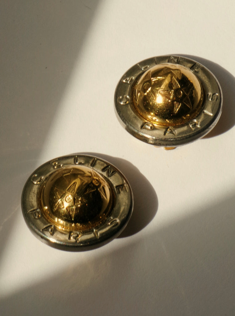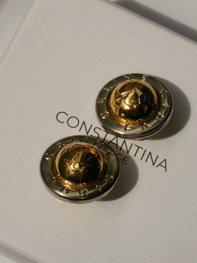 A rare find from Celine’s 1991 collection, these statement earrings capture the maison’s celestial allure. Crafted in dual-tone gold and silver, the bold dome design is adorned with Celine’s signature star and moon motif; a nod to the brand’s timeless fascination with cosmic symbols