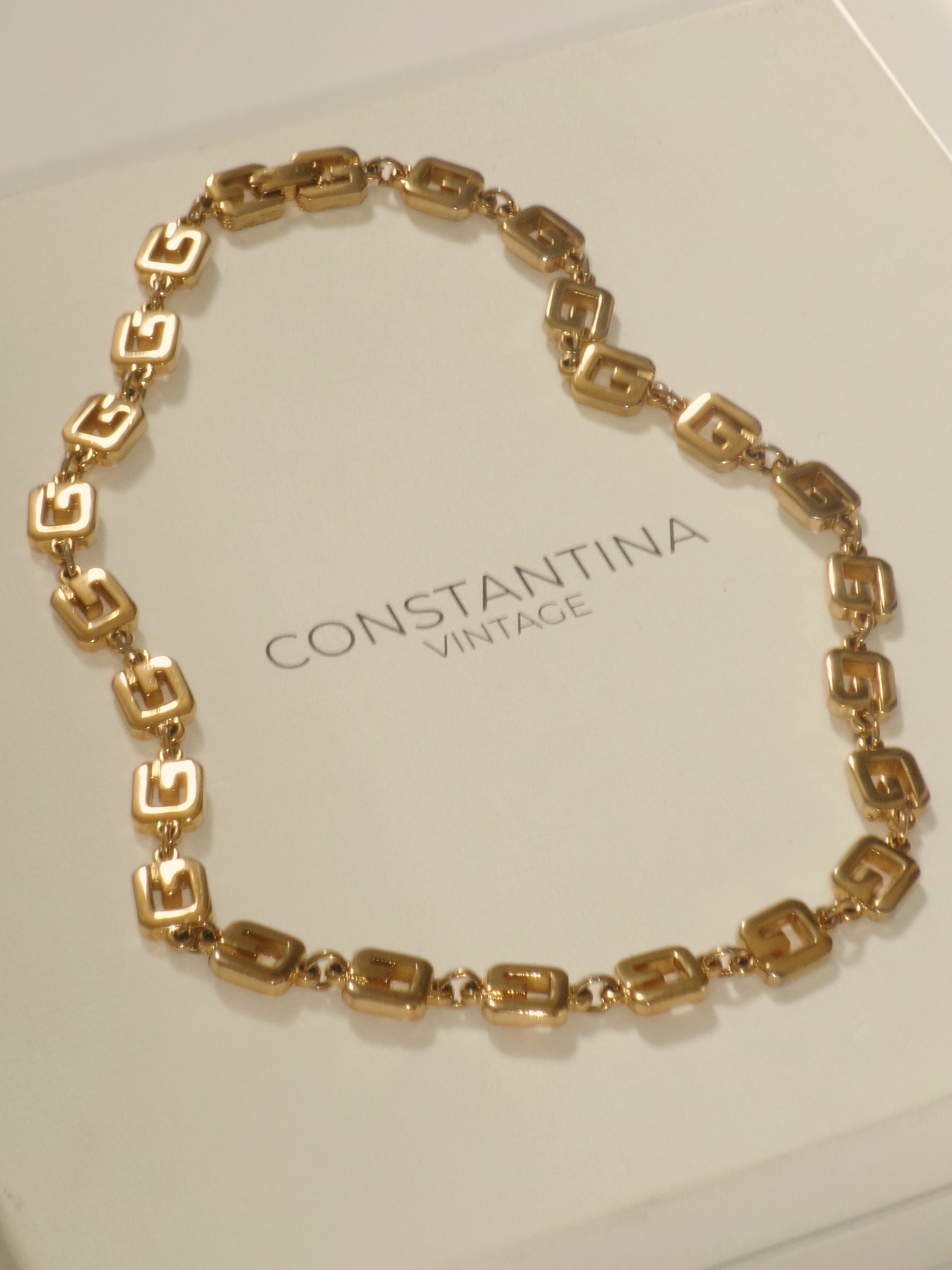 Givenchy 1980's gold plated logo necklace is backordered and will ship as soon as it is back in stock.